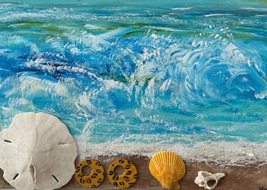 The Mixed Media Ocean Beach Walk Painting is featured on the Blog with proceeds to the Brain Injury Association BIAWE