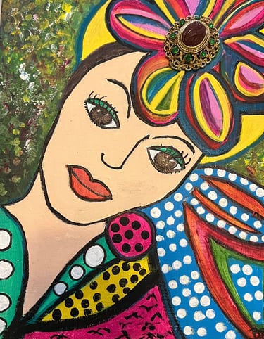 A self-taught artist, with limited lessons from artists in Florida and Windsor, she draws strength from her experiences to create work that celebrates resilience without sentimentality.